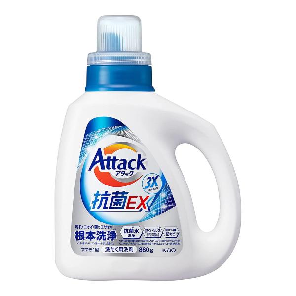 アタック抗菌EXは皮脂汚れや靴下の匂い、目には見えない菌のエサまで根本から綺麗に洗浄する洗濯洗剤です。
